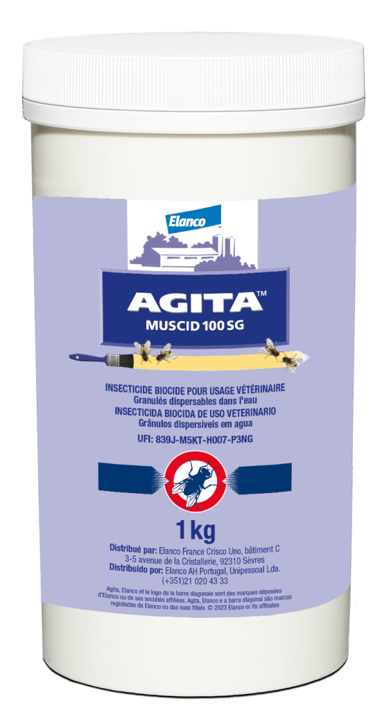 Mouches adultes : application en badigeon ou pulvérisation à la dose de 250 gr d’AGITA MUSCID pour 100 m2